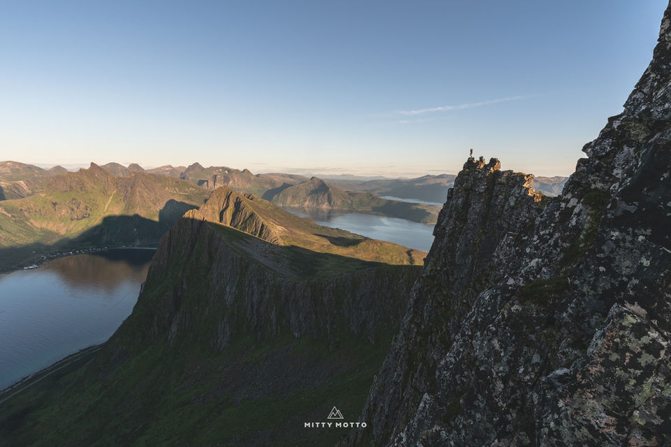 ภูเขาดังของที่นี่ คือ Segla ภูเขาหินผาทรงสูงชะลูดปลายแหลม แต่มุมที่สวยที่สุดไม่ใช่ต้องปีนขึ้นไปบนเขานี้นะ อย่าเพิ่งตกใจไป เราเดินไปทางลาดด้านข้างของภูเขาต่างหาก แล้วจะเห็นวิวที่ดีที่สุดเขานี้ พร้อมเบื้องหลังเป็นแนวฟยอร์ดและท้องทะเลอันสวยงามของประเทศนอร์เวย์ คุ้มเหนื่อยอย่างแน่นอน มันเป็นหนึ่งในจุดชมวิวที่สวยที่สุดในนอร์เวย์ และกลายเป็นแลนด์มาร์กของการปีนเขาในแถบอาร์กติกเซอร์เคิล